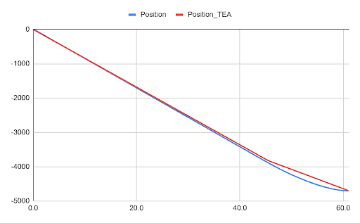 To illustrate the comparison, a time-series simulation incorporating the velocity-dependent Cd derived from the CFD analysis was conducted to represent the actual motion profile, which is then evaluated against the assumed motion profile utilized in the TEA. Values from TEA 6.2, Eureka III are used for this comparison.