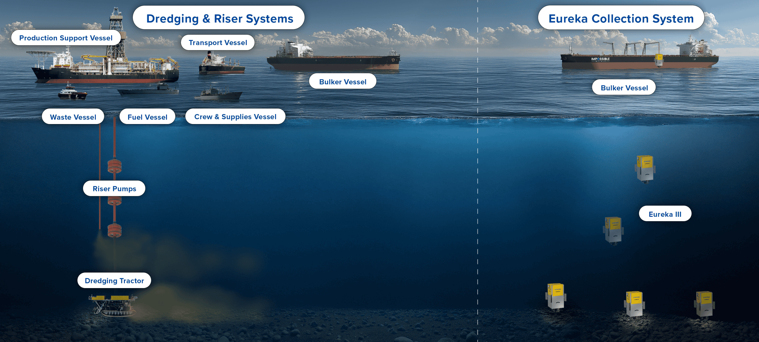 The above images show the CCZ nodule field before and after mining by dredging and riser systems.