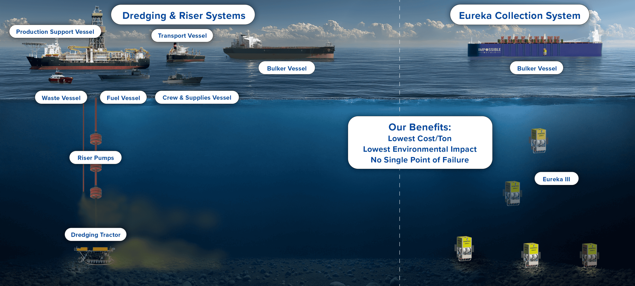 Impossible Metal’s AUV delicately extracts mineral-rich nodules. Competing dredging designs destroy the habitat.